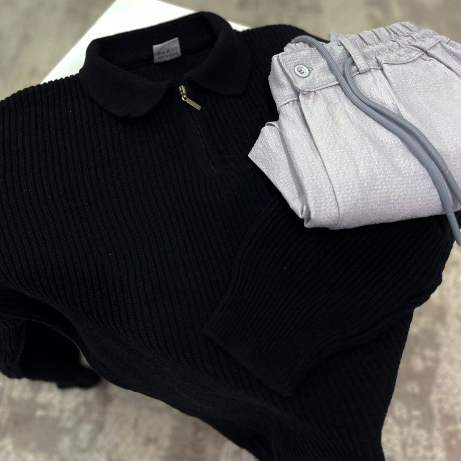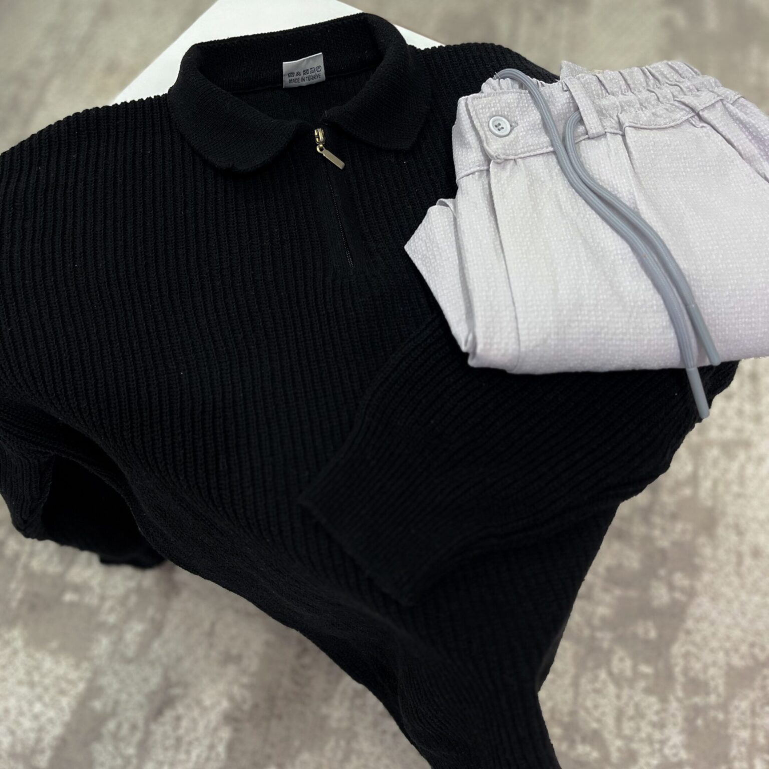 ₺900,00SİYAH KAZAK + BEYAZ LİKRALI PANTOLON KOMBİN1