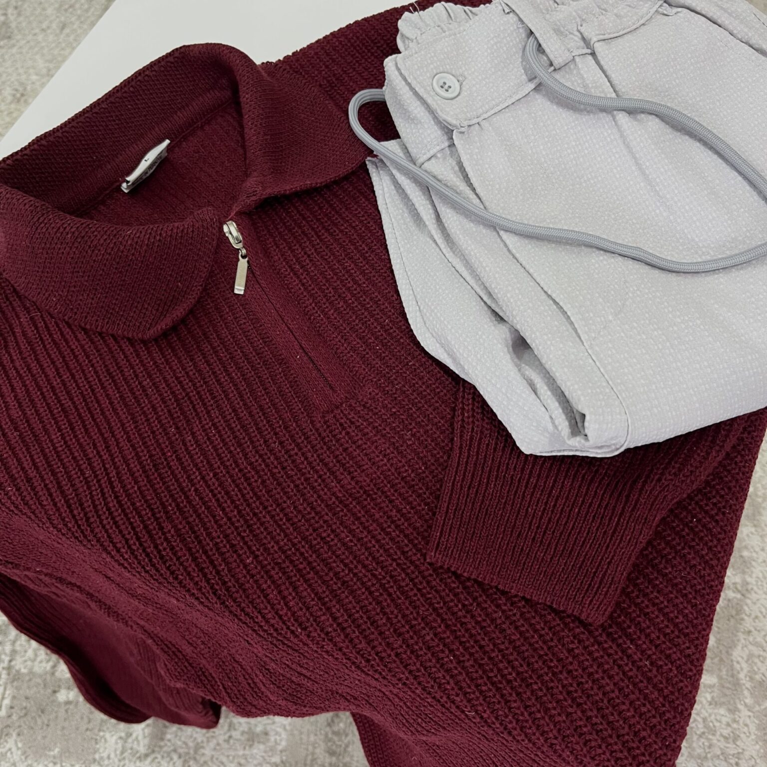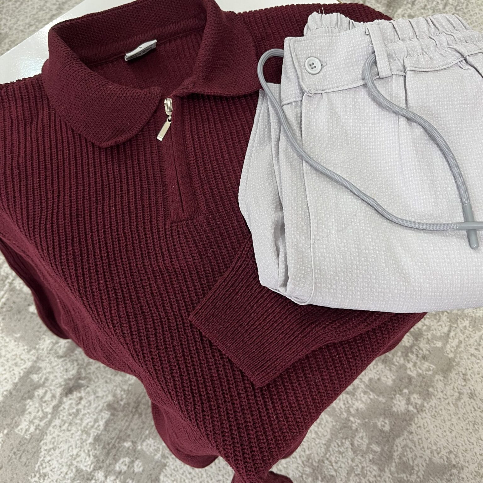 ₺900,00BORDO KAZAK + BEYAZ LİKRALI PANTOLON KOMBİN2