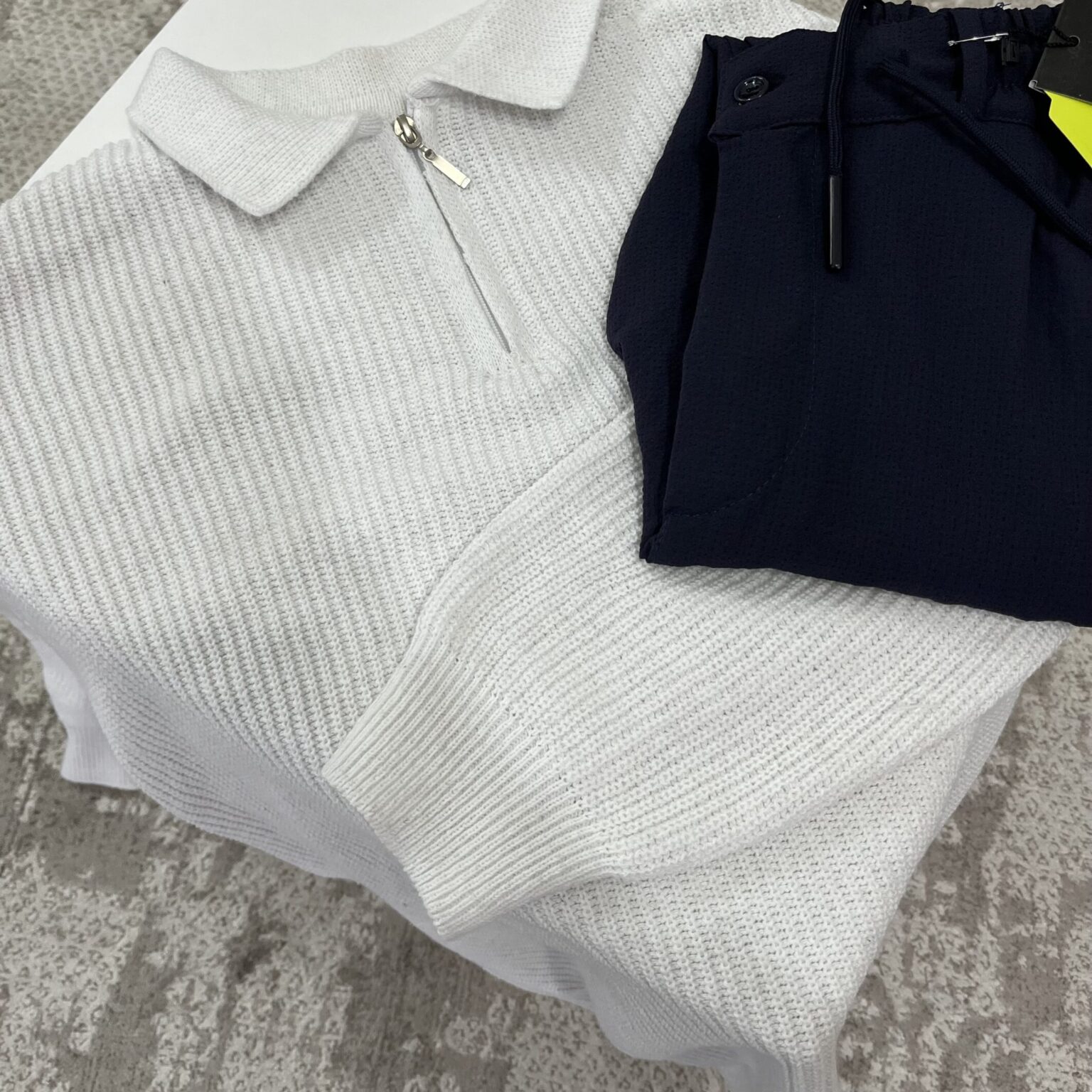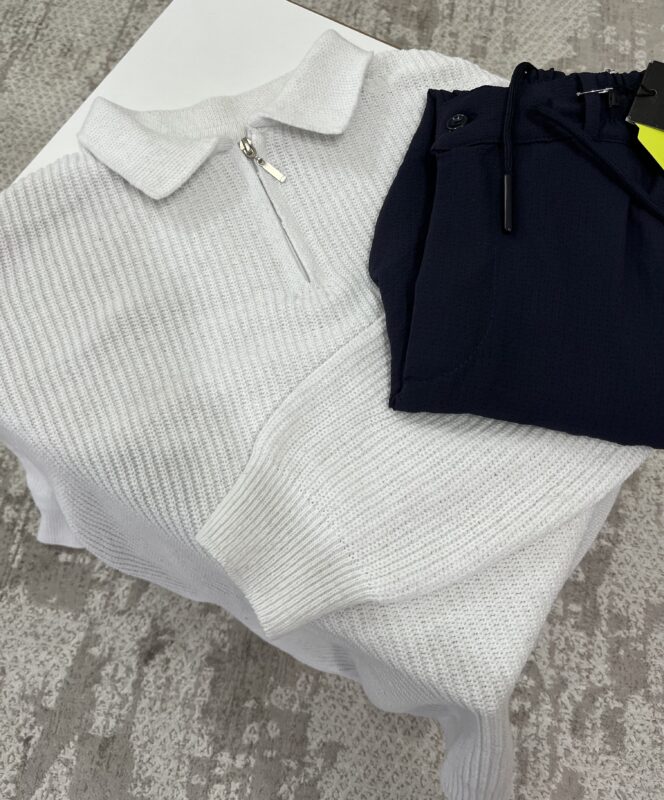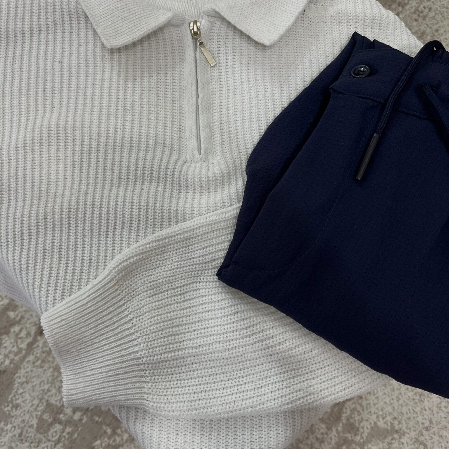 ₺900,00BEYAZ KAZAK + LACİVERT LİKRALI PANTOLON KOMBİN3