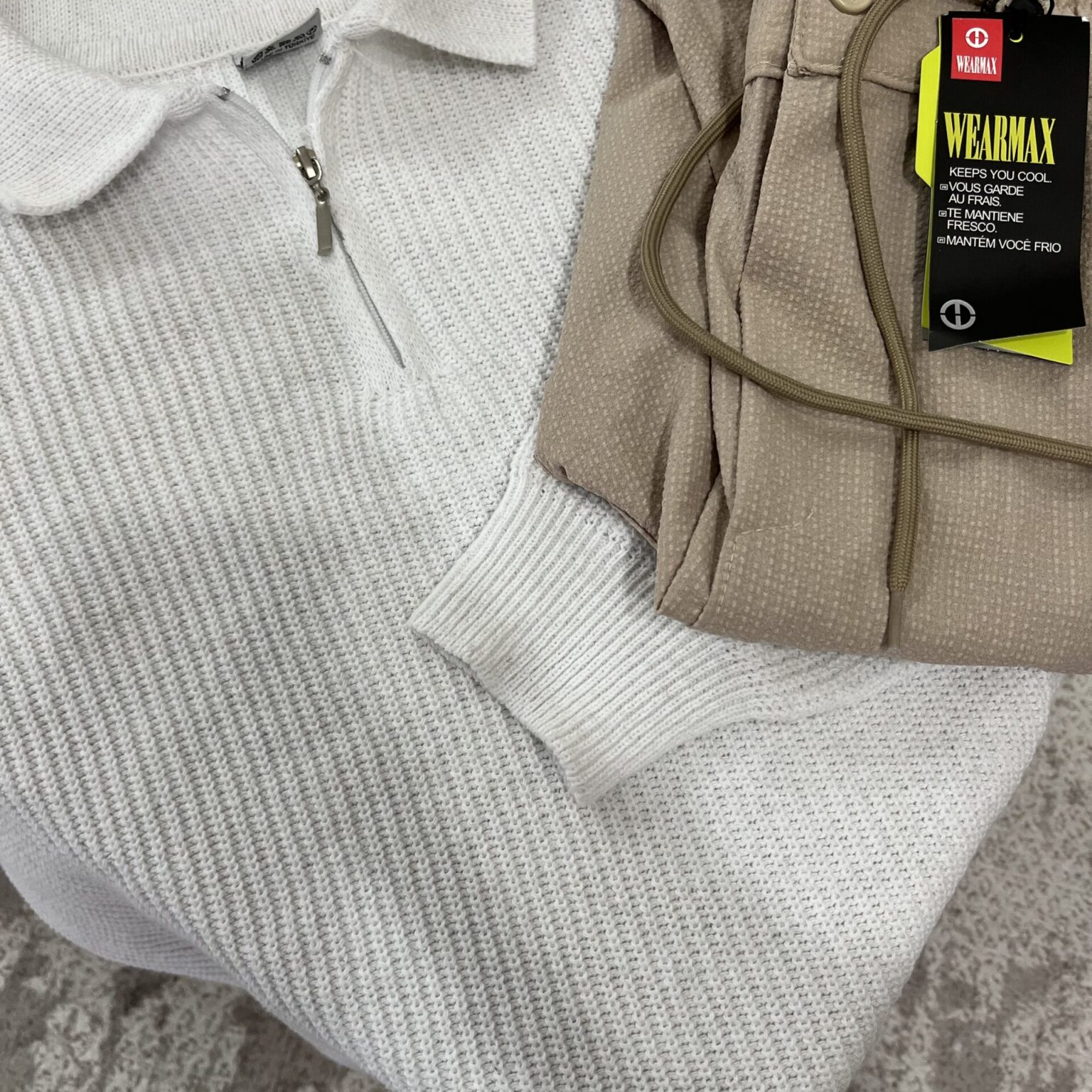 ₺900,00BEYAZ KAZAK + KREM LİKRALI PANTOLON KOMBİN8