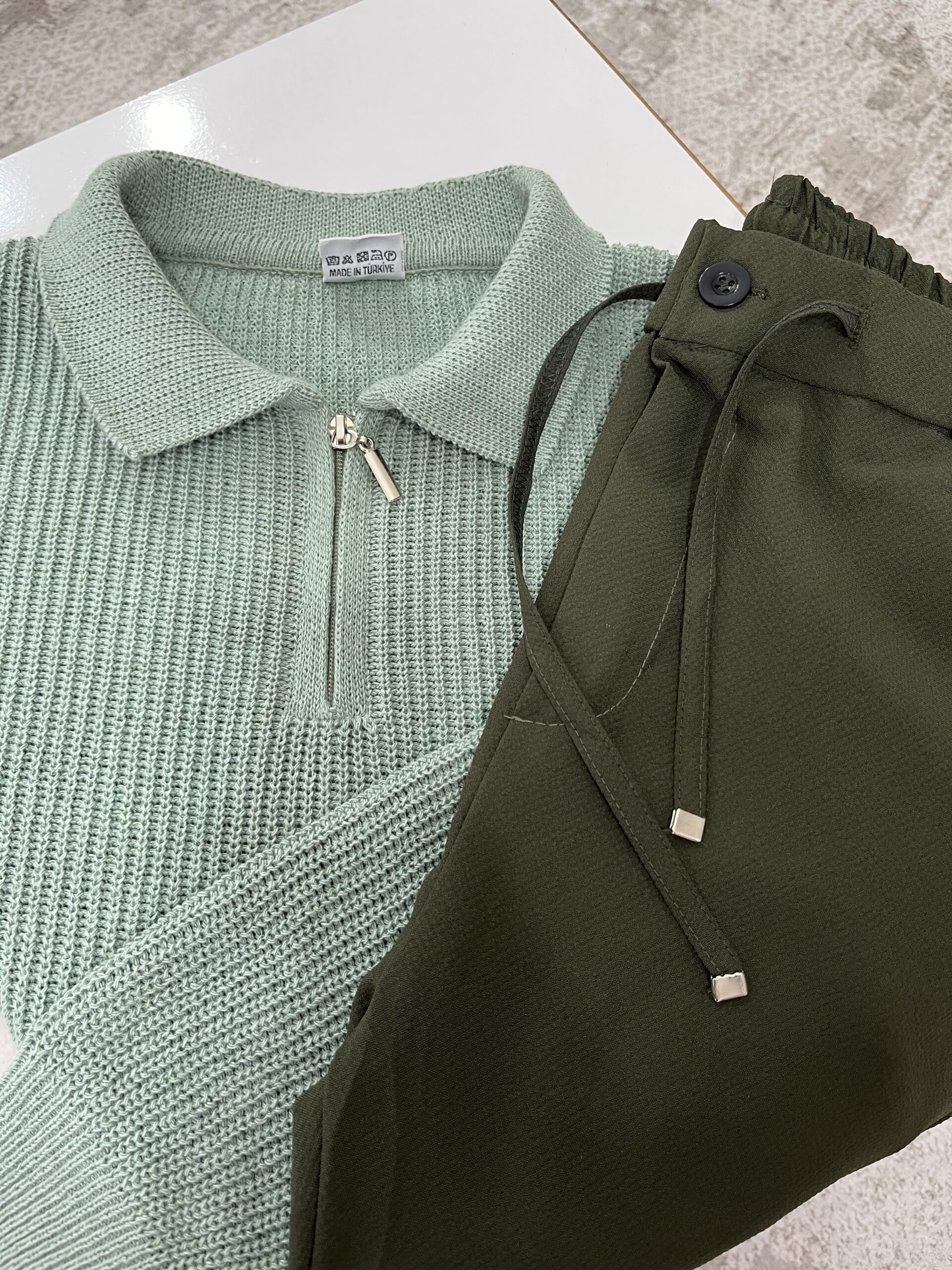 ÇAĞLA KAZAK + HAKİ LİKRALI PANTOLON KOMBİN6