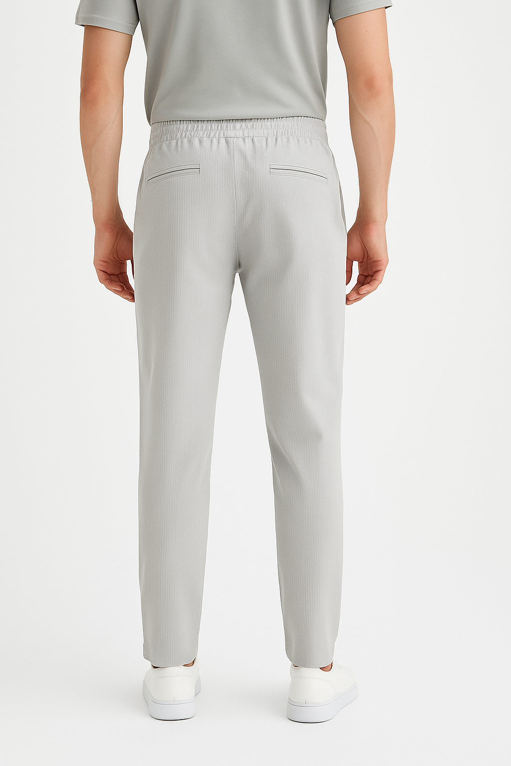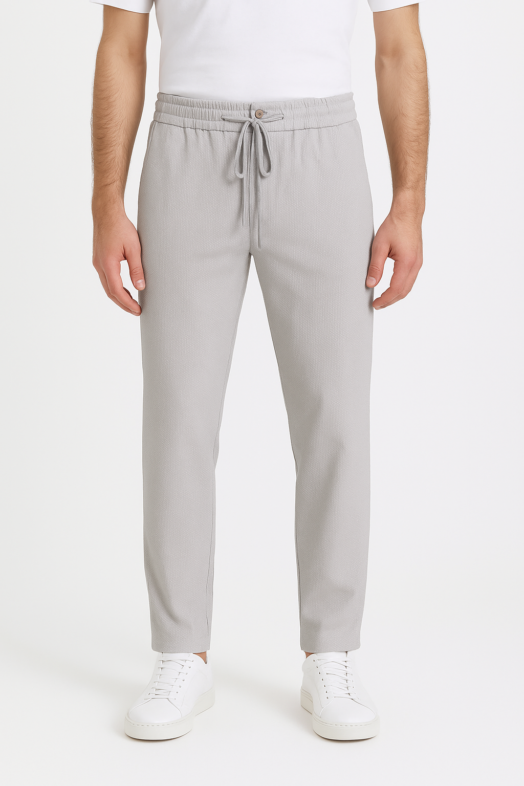 Stil sahibi erkeklerin tercih ettiği bu likralı keten görünümlü ipli pantolon; kesimi, dokusu ve rahatlığıyla her ortamda kendini gösteren modern bir tasarıma sahiptir. Keten dokulu özel kumaşı sayesinde hem şık hem de doğal bir görünüm sunarken, likra esnekliği ile gün boyu konfor sağlar.