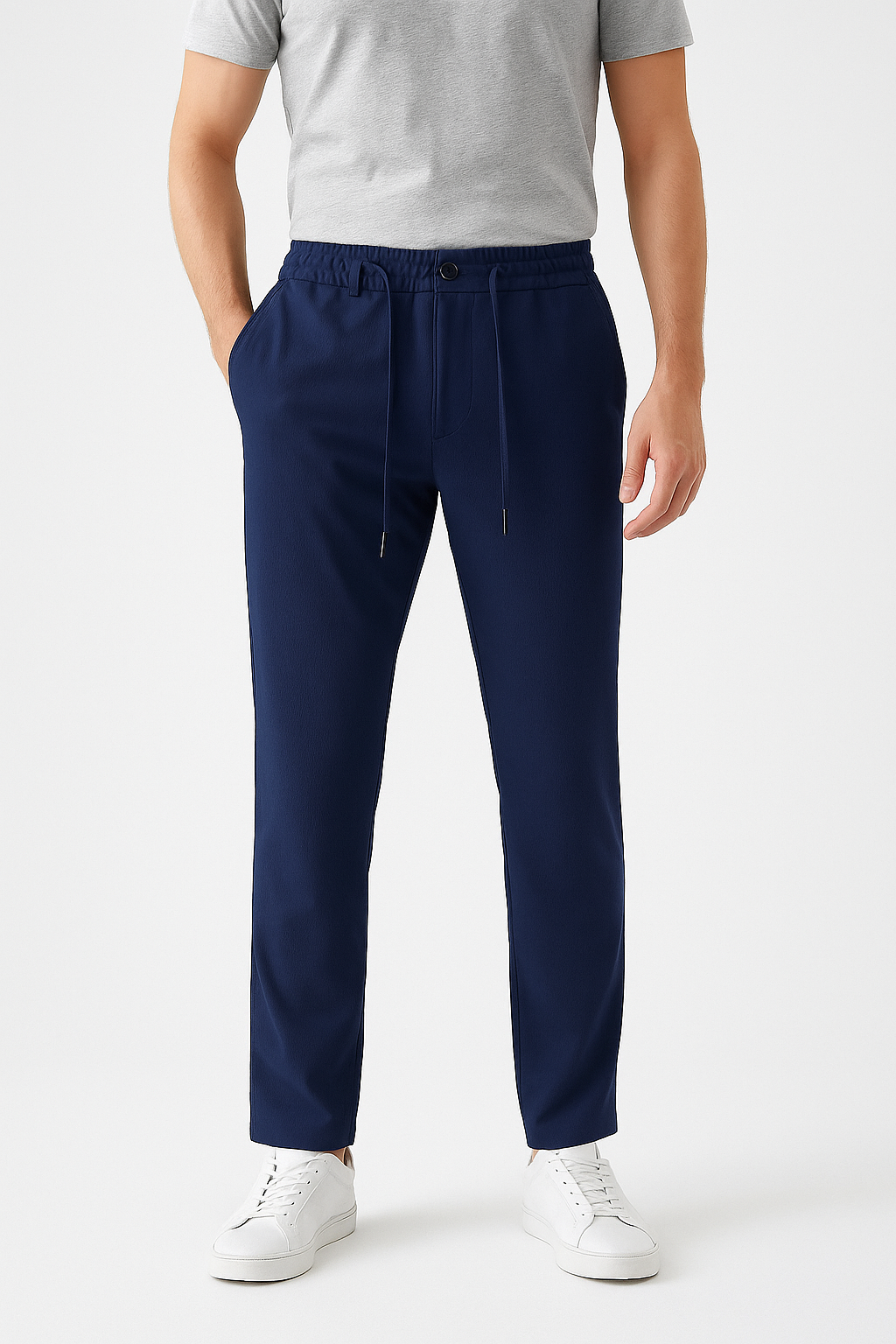 Stil sahibi erkeklerin tercih ettiği bu likralı keten görünümlü ipli pantolon; kesimi, dokusu ve rahatlığıyla her ortamda kendini gösteren modern bir tasarıma sahiptir. Keten dokulu özel kumaşı sayesinde hem şık hem de doğal bir görünüm sunarken, likra esnekliği ile gün boyu konfor sağlar.